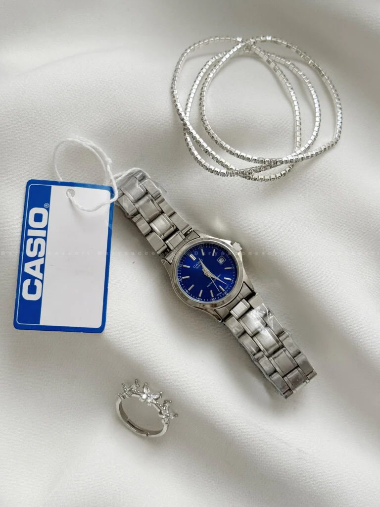 ساعت کاسیو دو رنگ صفحه نقره ای 2346